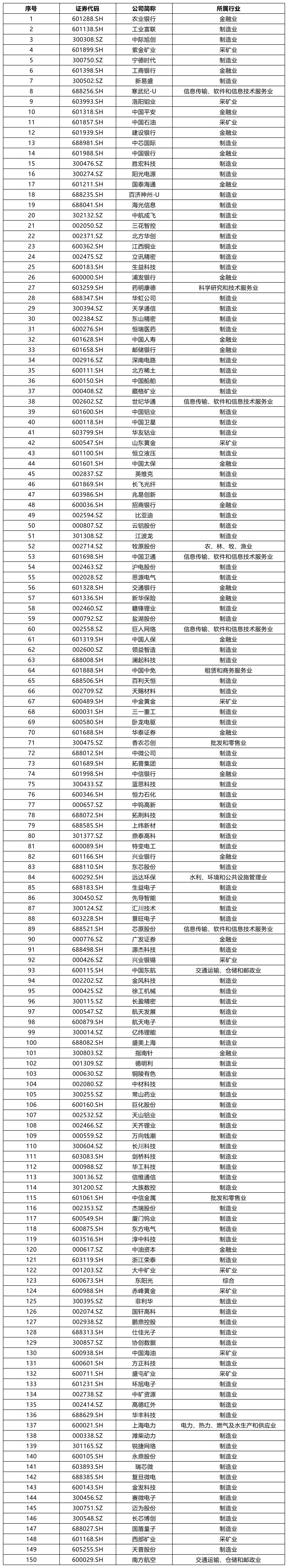 表12025年上市公司A股市值增长最突出的150家上市公司