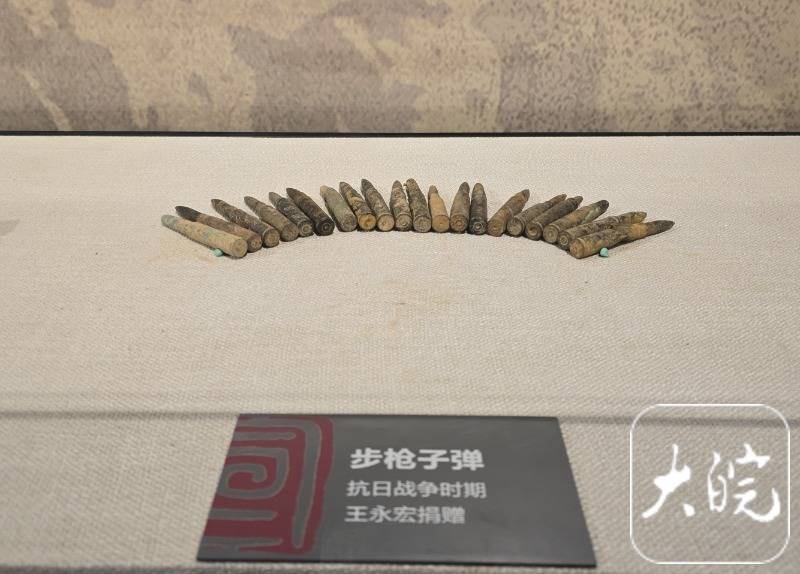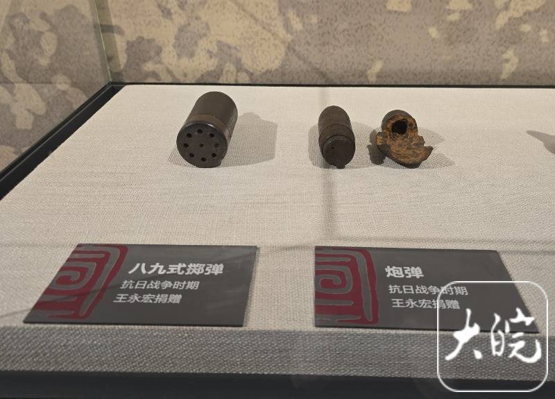 r步枪子弹、八八式炮弹引信、八八式榴臼炮弹引信、炮弹、八九式掷弹……1月11日下午,在宣城市博物馆三楼的“红色记忆”展区,大皖新闻记者看到一个展柜中展示着这样几件抗日战争时期的文物。有些特别的是,这几件文物的介绍牌上都写着“王永宏捐赠”。